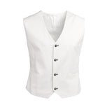 The Miami linen vest completes the ensemble with light, intentional balance. Featuring a four-button front, pointed hem, and an adjustable back, it introduces texture and ease to the look. Whether layered beneath the jacket or worn on its own, the vest brings relaxed structure and effortless sophistication to warm-weather dressing.