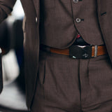This look pairs The Hazel suit’s earthy tones with a deep, silk-like shirt, introducing subtle sheen and richness that elevate natural elegance. Crafted for the man who embraces texture and depth with confident ease, it’s a statement of refined comfort and timeless style.