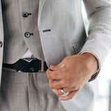 This look pairs The Slate suit’s cool, muted tones with a crisp white shirt, creating a refined and versatile ensemble. Designed for the man who values clarity and confidence, it’s style that speaks softly but leaves a strong impression.