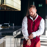 This look pairs the rich, earthy hues of our linen suit with a crisp white shirt, creating a harmonious blend of warmth and freshness. This combination offers a refined yet approachable aesthetic, perfect for the man who values effortless style with thoughtful contrast. Designed for sunlit days and sophisticated occasions, it’s a statement of quiet confidence and natural elegance.