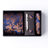 • Includes a necktie, pocket square, tie clip and cufflinks