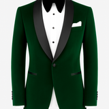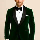 The Shamrock Velvet suit is a fresh take on classic luxury, crafted for the gentleman who embraces bold sophistication with ease. Its rich, deep green velvet evokes natural elegance and vibrant confidence. Tailored with precision, the suit offers a smooth, plush texture and a sharp silhouette, perfect for making a distinctive statement at evening affairs or special occasions. The Shamrock Velvet blends timeless charm with contemporary flair.